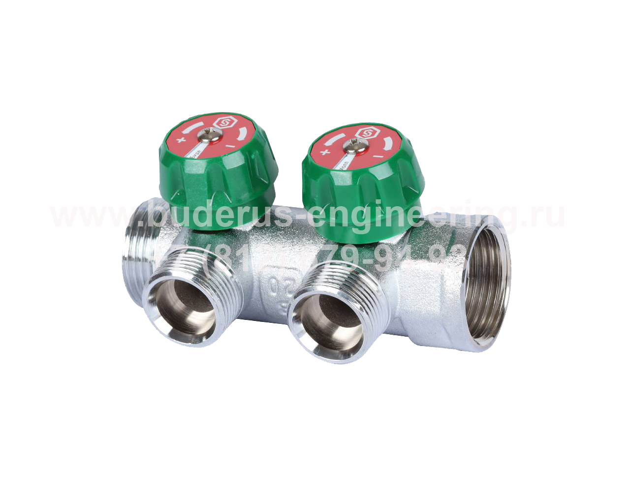 Коллектор из латуни, хромированный с зелеными вентиля.